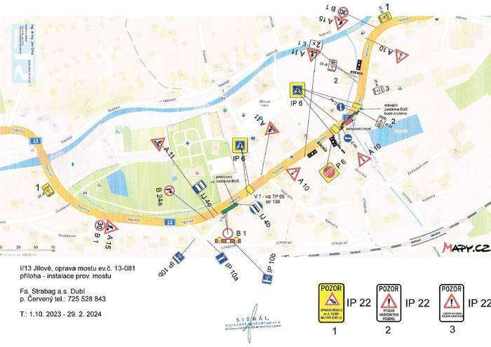 Informujeme občany, že od 03.10.2023 do konce opravy mostku ev. č. 13-081 (předpokládaný termín dokončení 02/2024), bude autobusová zastávka směr Děčín - Jílové - náměstí (u koupaliště) přemístěna na křižovatku ul. Teplická a U Nádraží (u domu č. p. 242).