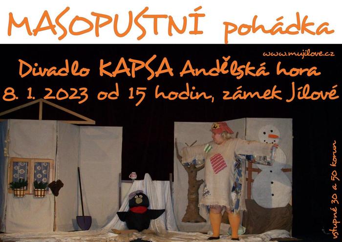 Divadlo KAPSA Andělská hora představí v neděli 08.01.2023 od 15 hod. MASOPUSTNÍ pohádku. Těšíme se na vás na Jílovském zámku.