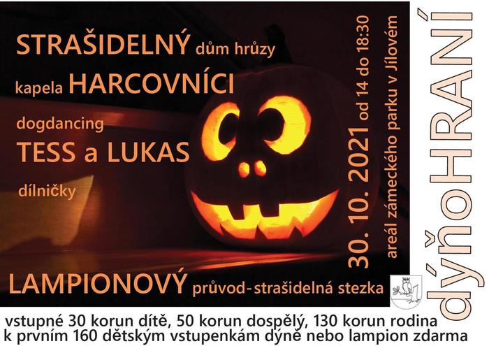 V sobotu 30.10.2021 od 14 hod. je pro vás v parku Jílovského zámku připraven strašidelný dům hrůzy, Harcovníci, dogdancing nebo také strašidelná stezka.